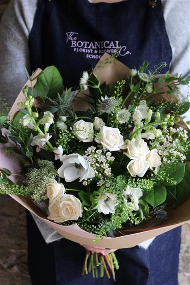 With a focus on texture, tone, and natural movement, our florists carefully select blooms that complement this gentle colour story, resulting in a bouquet that feels calm, modern, and quietly luxurious.